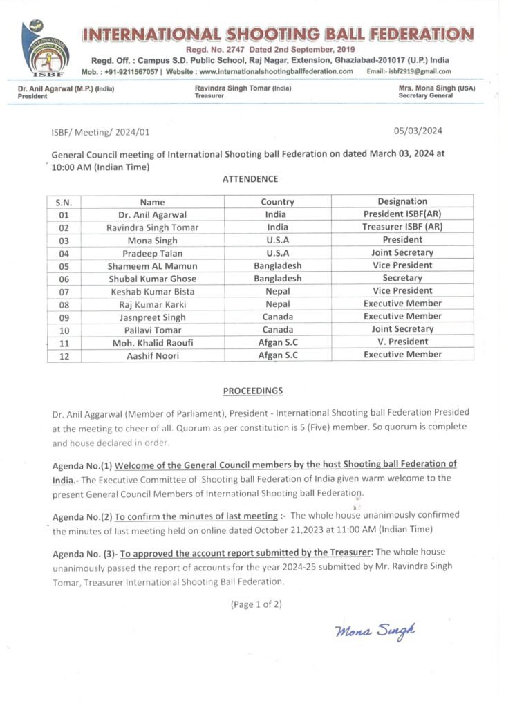 1st Shootingball World Cup held at J.L.N.Stadium, New Delhi from March 2nd to 3rd 2024