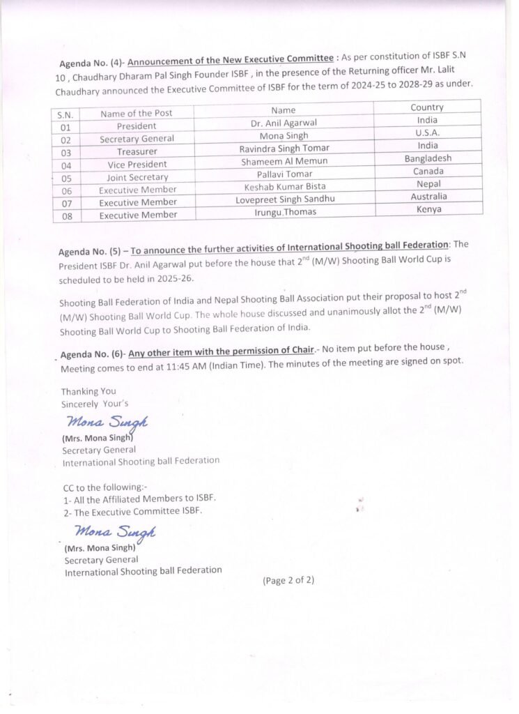 2nd (M/W) Shooting ball World Cup will be held in 2025-26